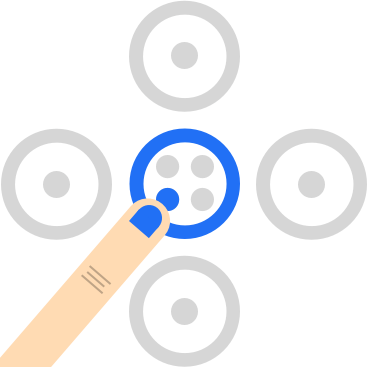 Die Kreise können eingenommen werden, indem ein Spieler auf einen der grauen Kreise tippt. Dadurch wechselt der Kreis seine Farbe zu der entsprechenden Spieler Farbe und erhält eine Markierung: |